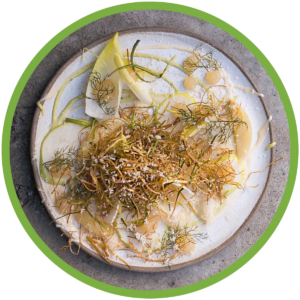 Produkte wie Miso, Tempeh oder Garum werden selbst hergestellt, Gemüse fermentiert und damit haltbar gemacht. Der Gedanke dahinter: mit dem arbeiten, was da ist – und das so lecker und innovativ wie möglich.