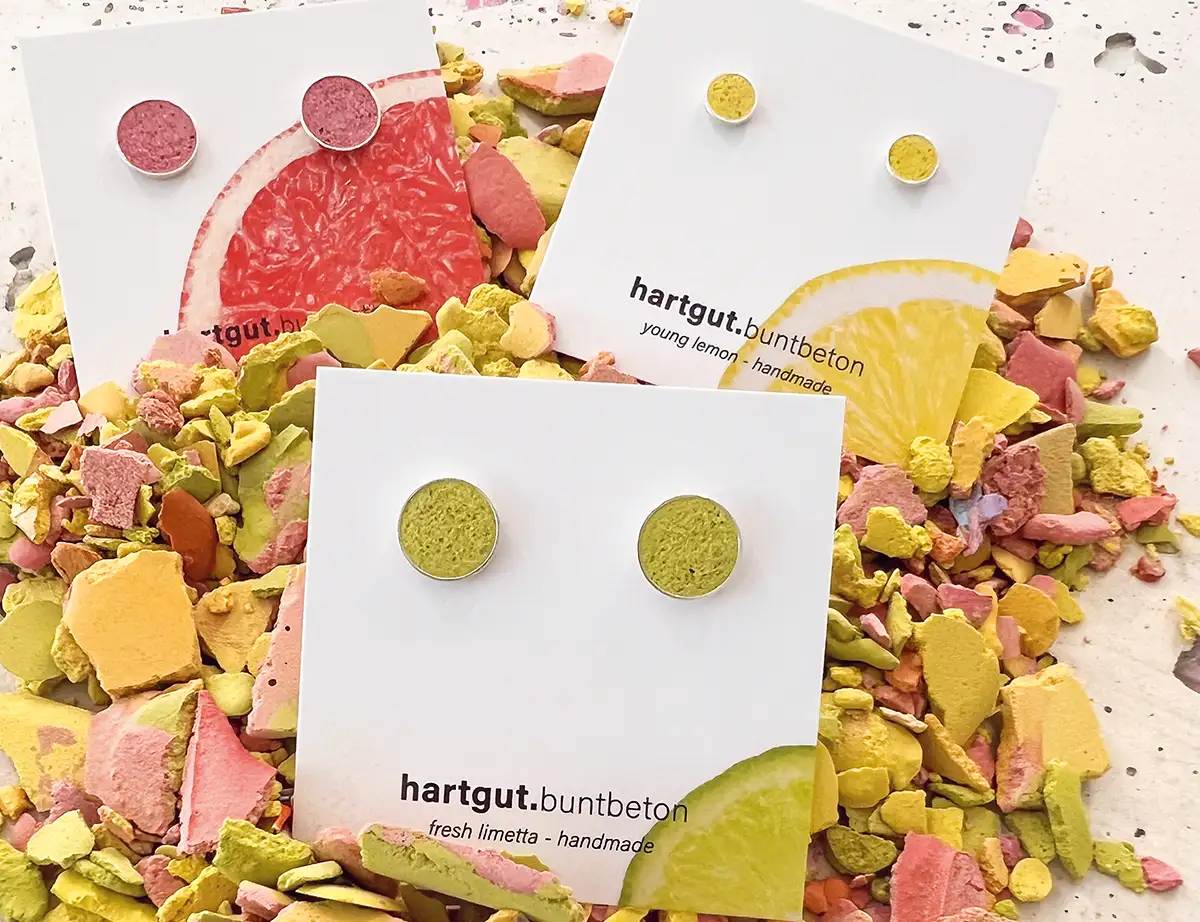 Mit viel Liebe zum Detail entwickeln hier die beiden Architekten Erol Slowy und Florian Dachauer aus dem vermeintlich harten Werkstoff Beton überraschend filigrane Schmuckstücke und Designobjekte. Denn sie mischen nach besonderen Rezepturen den Beton mit Farben oder Muscheln aus dem Meer. Jedes Stück wird in Handarbeit gefertigt und zeigt, wie vielfältig, farbig und individuell Beton sein kann. Jeder Ohrstecker, jede Kette ist ein Unikat. „Wann immer wir Urlaub haben, fahren wir mit unseren Familien ans Wasser. So ist unser Muschelbeton eine große Liebeserklärung an das Meer“, sagt Erol Slowy.